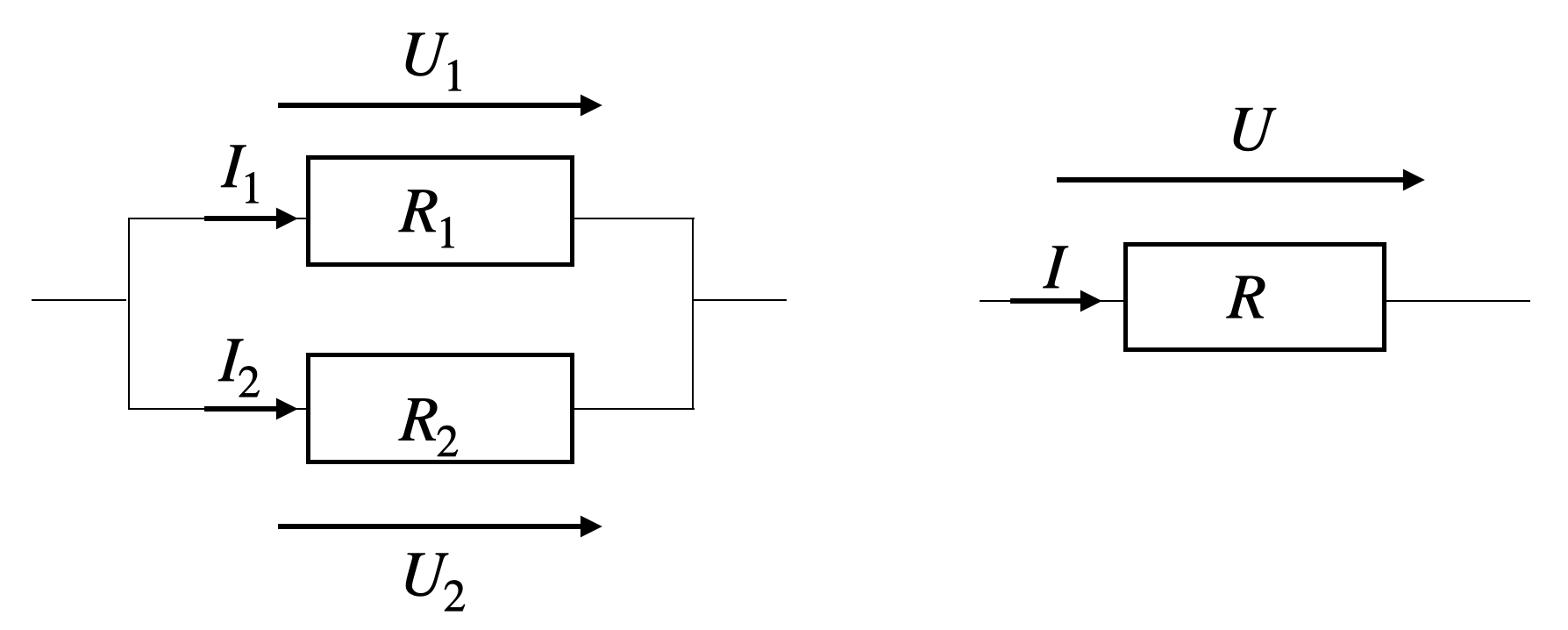 - en parallèle \(\frac{1}{R} = \sum_i{\frac{1}{R_i}}\)